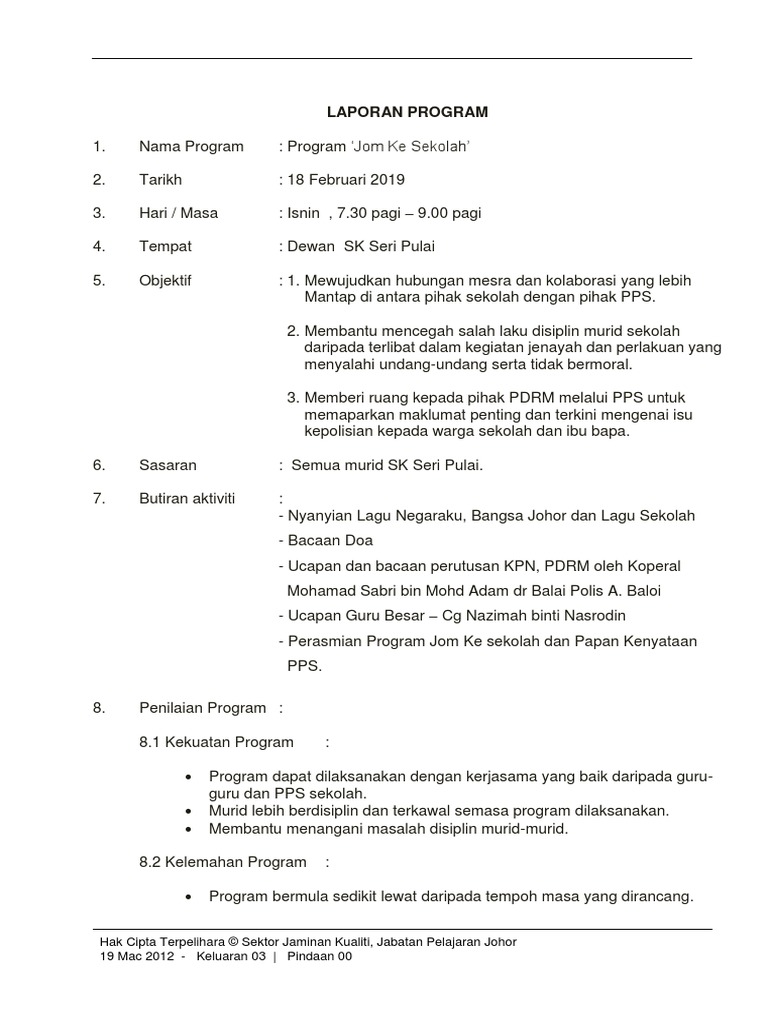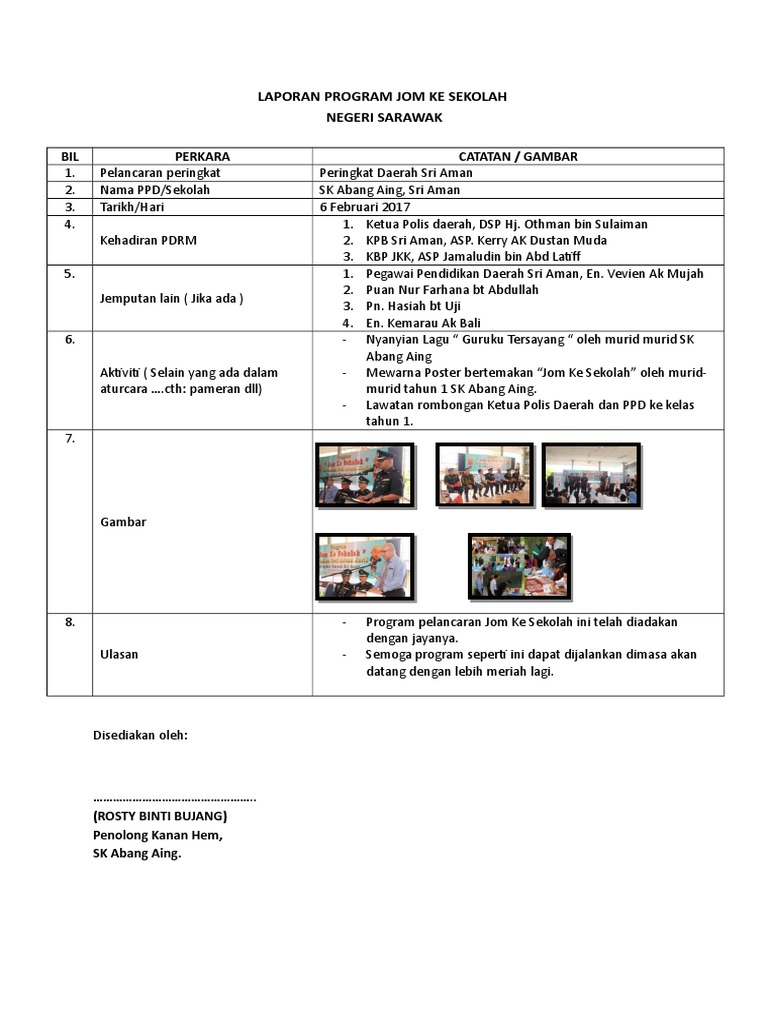 Laporan program jom ke sekolah. Check spelling or type a new query. We did not find results for: Maybe you would like to learn more about one of these?